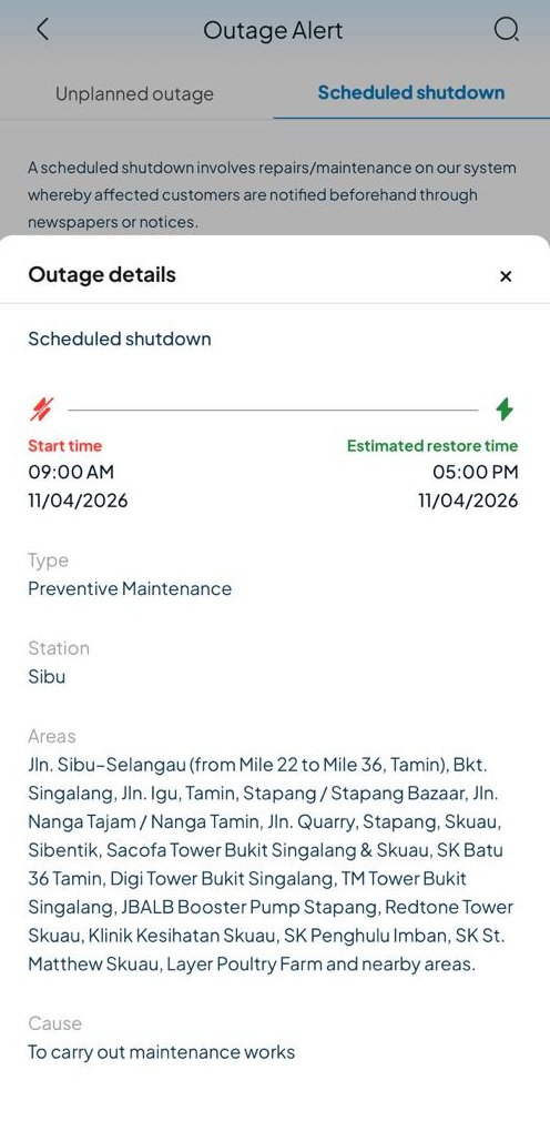 Notis Gangguan Elektrik 11 April 2026